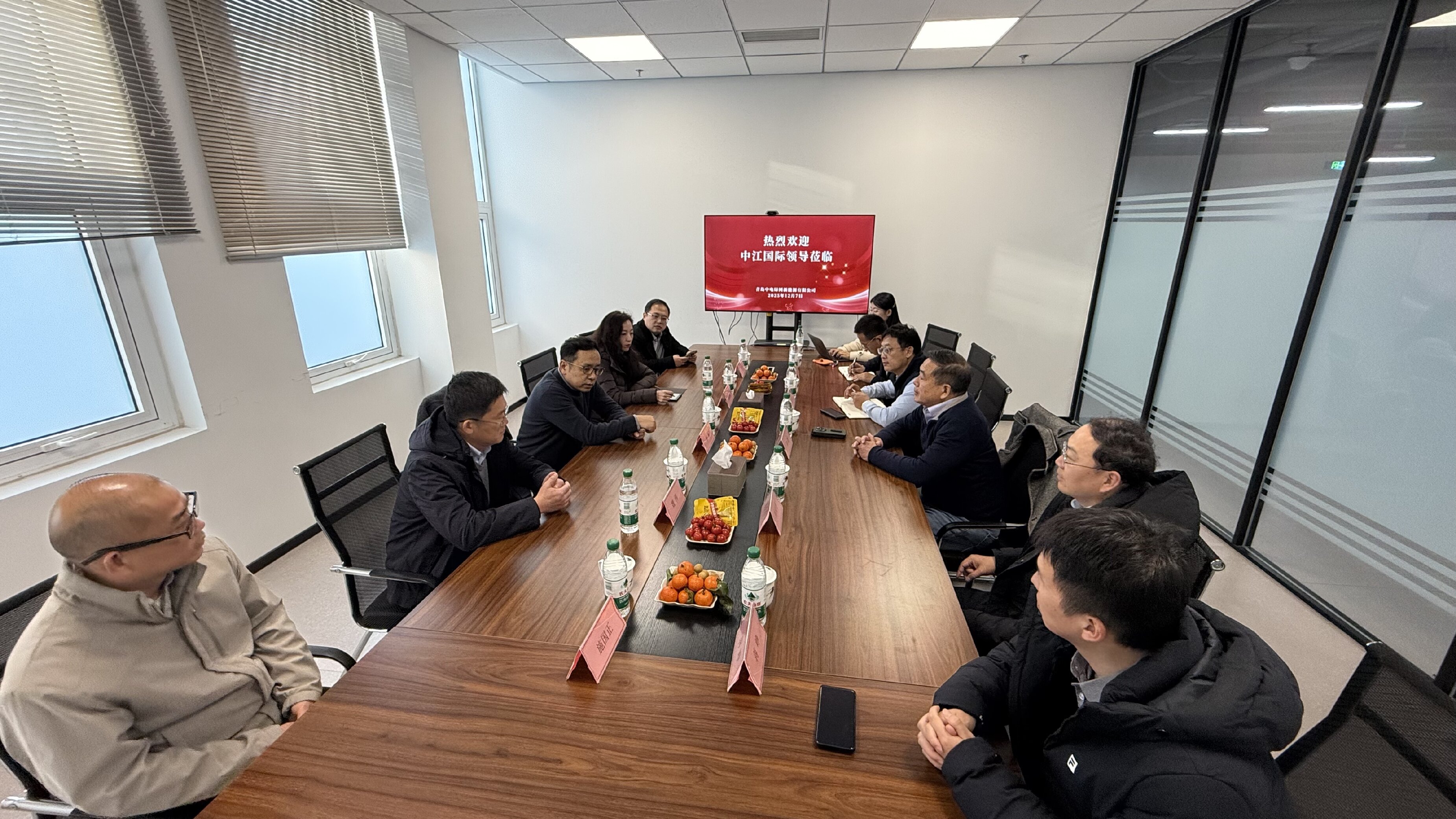 2025年12月7日,中江國際領(lǐng)導(dǎo)一行蒞臨中電綠網(wǎng)調(diào)研,雙方就海外新能源項(xiàng)目合作進(jìn)行了深入交流。中江國際在非洲、中東、中亞等“一帶一路”沿線具備成熟的工程與資源開發(fā)能力,對當(dāng)?shù)毓夥δ芗半娏ε涮椎脑鲩L需求形成清晰判斷;中電綠網(wǎng)則在微電網(wǎng)、能源管理系統(tǒng)及整體解決方案方面具備技術(shù)優(yōu)勢。雙方一致認(rèn)為,可在光儲微電網(wǎng)、港口及園區(qū)能源等場景展開協(xié)同,推動示范項(xiàng)目率先落地,共同打造綠色低碳出海的新樣板。